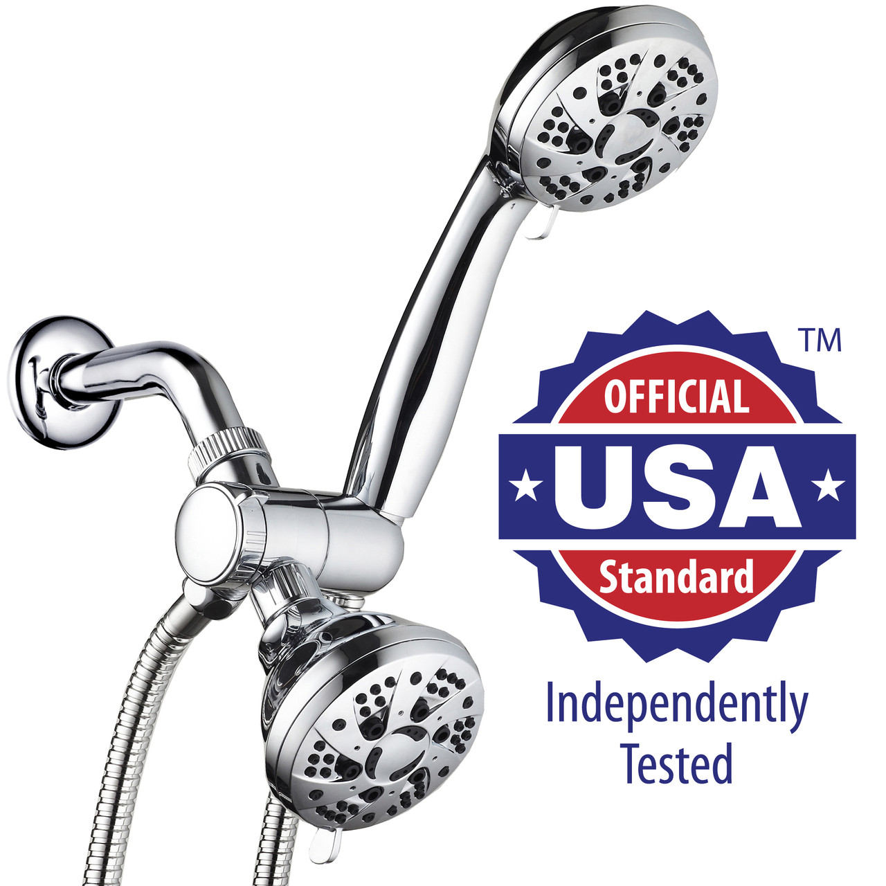 Your order will arrive in an easy-to-open premium recyclable box that protects your product during shipping. No hard to open plastic casings, plain brown boxes or cheap poly bags! Each box contains 3.5-inch Chrome Face Shower Head, 3.5-inch Chrome Face Hand Shower, Super-Flexible Stainless Steel Shower Hose, Patented 3-Way Diverter with Angle-Adjustable Bracket, free Washers and Teflon Tape. Our Easy-to-follow instructions make the installation process effortless!