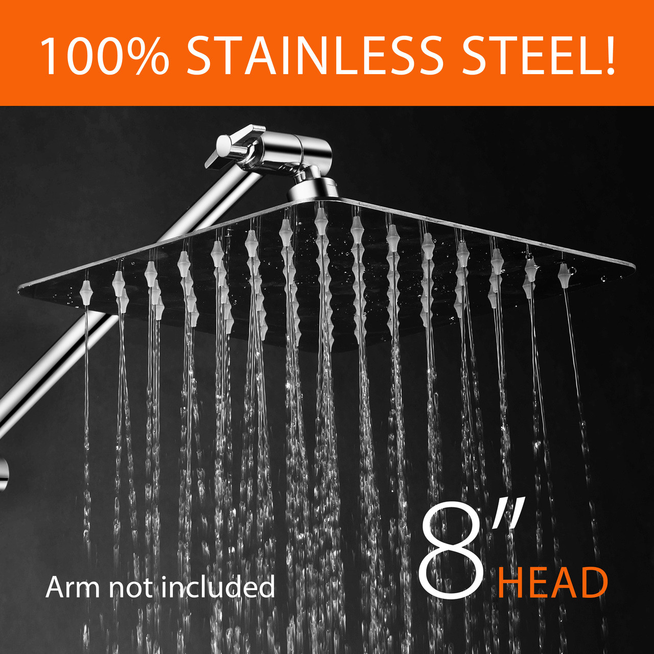 - Hotel Spa® 8-inch 100% Stainless Steel Rainfall Shower Head with Ultra-Thin Low Profile, Waterfall Coverage, and 64 Easy-to-Clean Jets, Simple Install Without Tools – Chrome Finish
